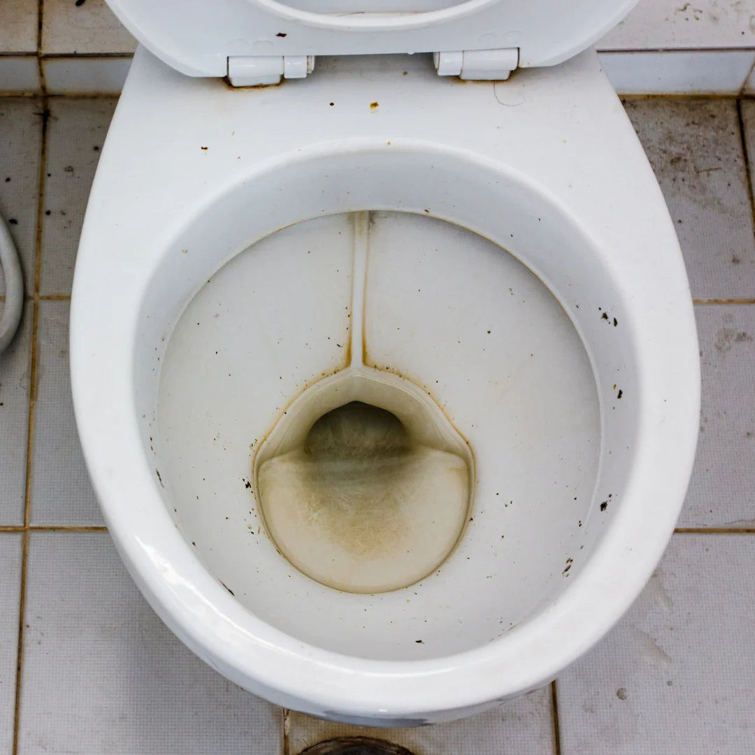 Water is filled with sticky minerals that that latch onto toilet bowls.