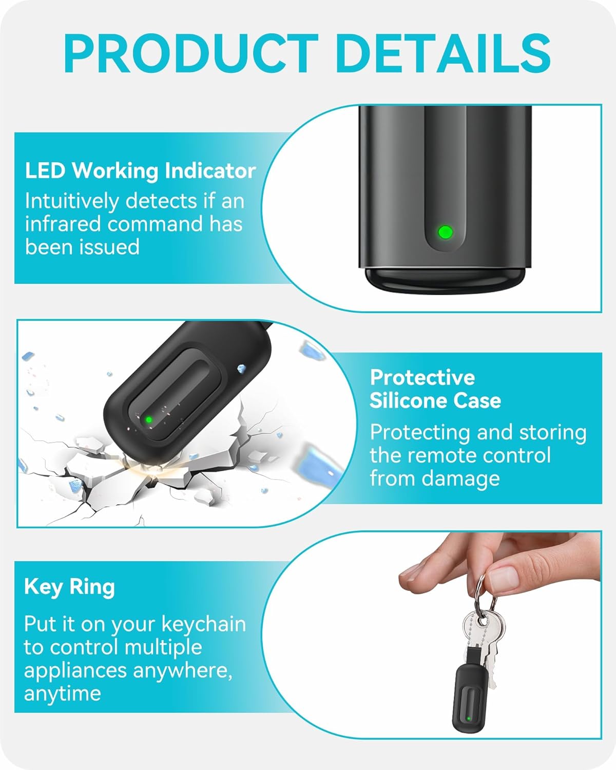 - Compact, space-saving design that fits on your keychain
